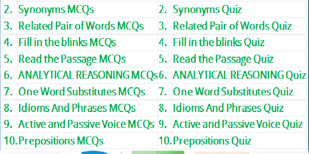 English Grammar MCQs Quiz Tests List